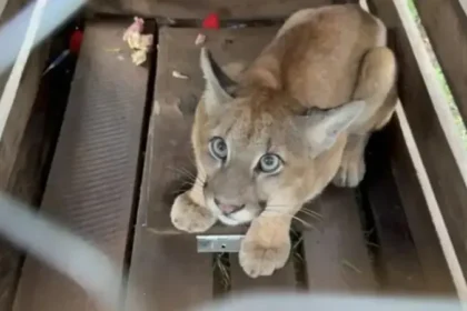 RIBEIRÃO CLARO – Onça-parda jovem é resgatada após cair em armadilha em propriedade rural